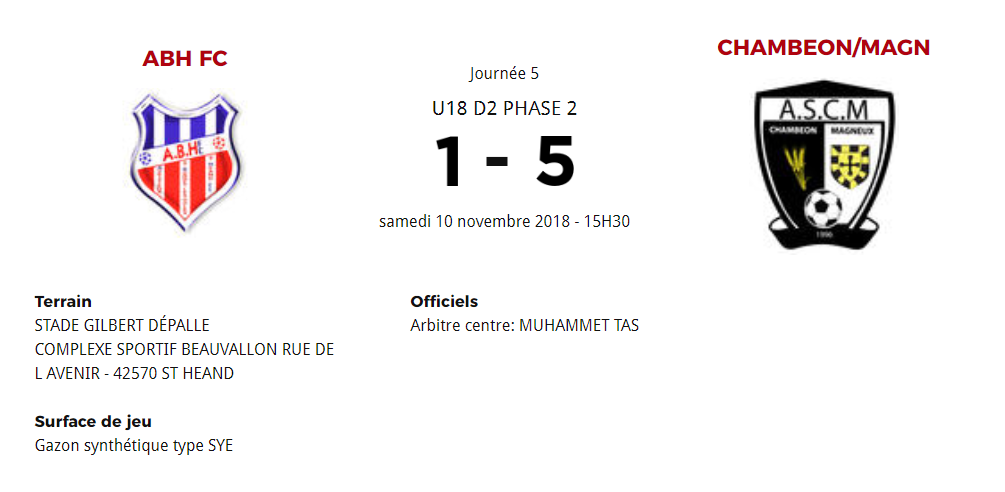 Championnat U18, 5ème journée / Contre CHAMBEON