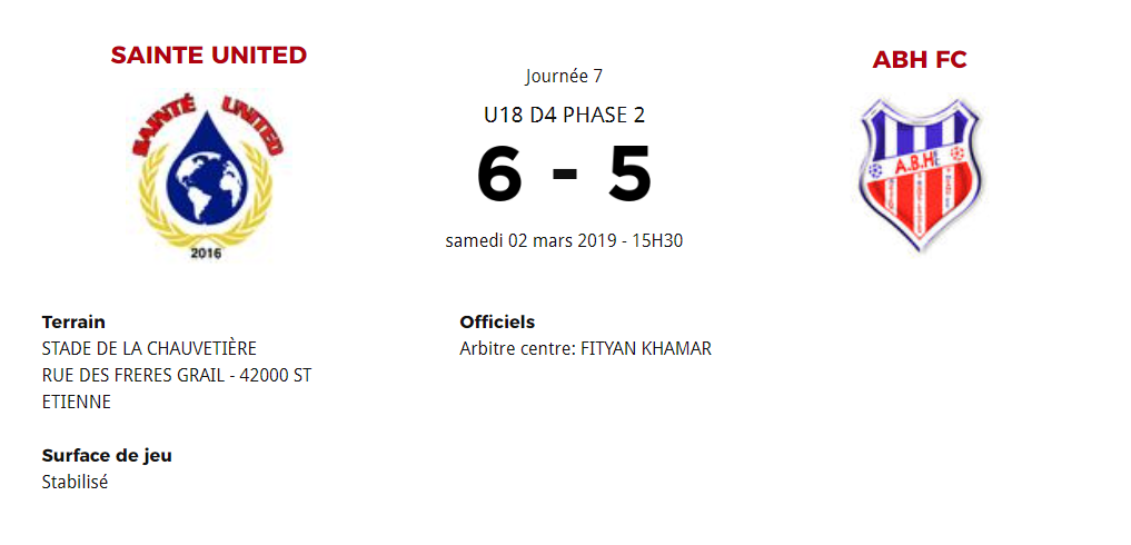 Championnat U18, 7ème journée / Contre SAINTE UNITED
