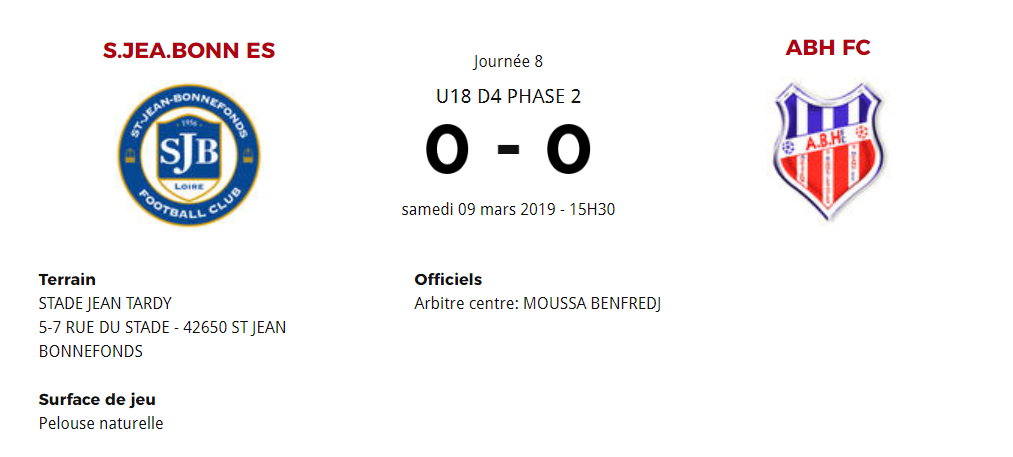 Championnat U18, 8ème journée / Contre Saint Jean Bonnefonds