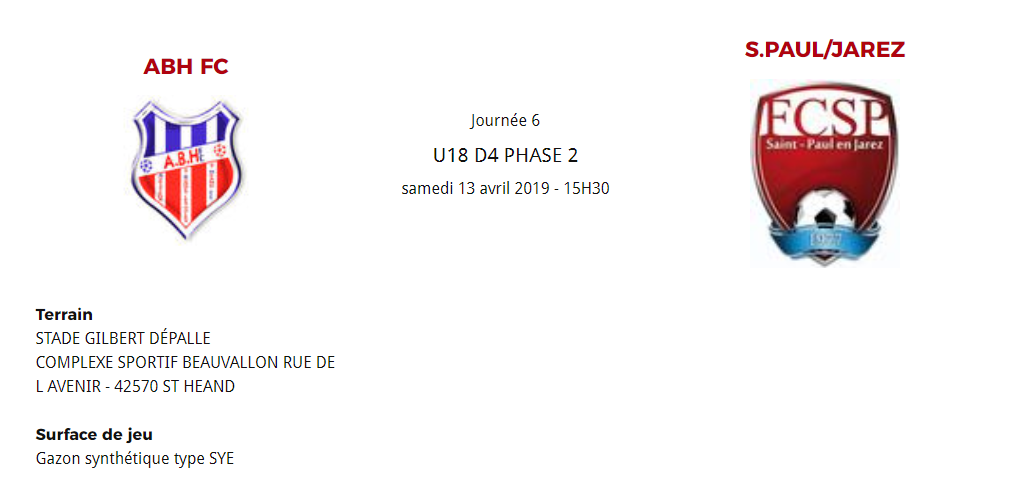 Championnat U18, 6ème journée / Contre F.C. ST PAUL EN JAREZ 2