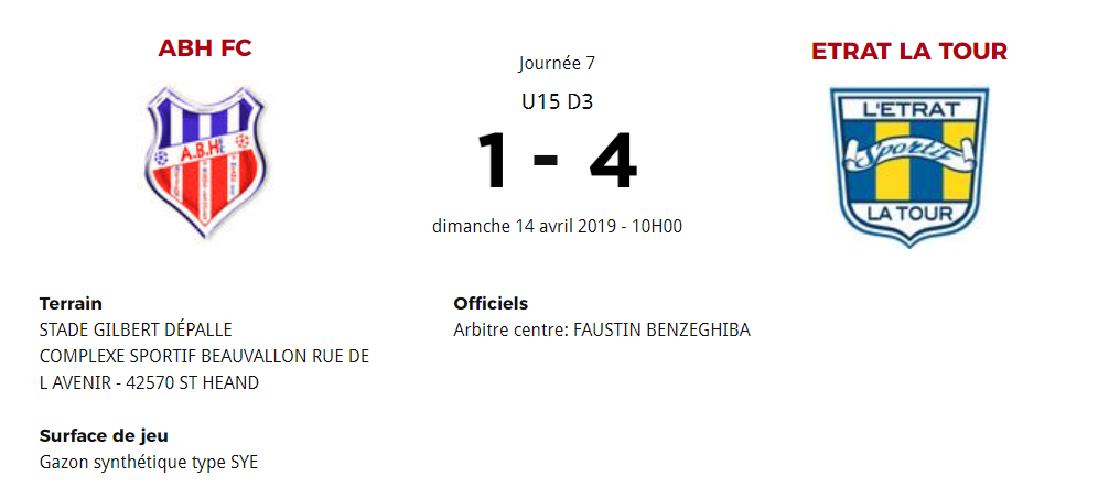 Championnat U15, 7ème journée / Contre L'ETRAT LA TOUR 3