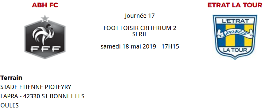 17 ème journée district (dernier match à domicile) : ABH - l'Etrat
