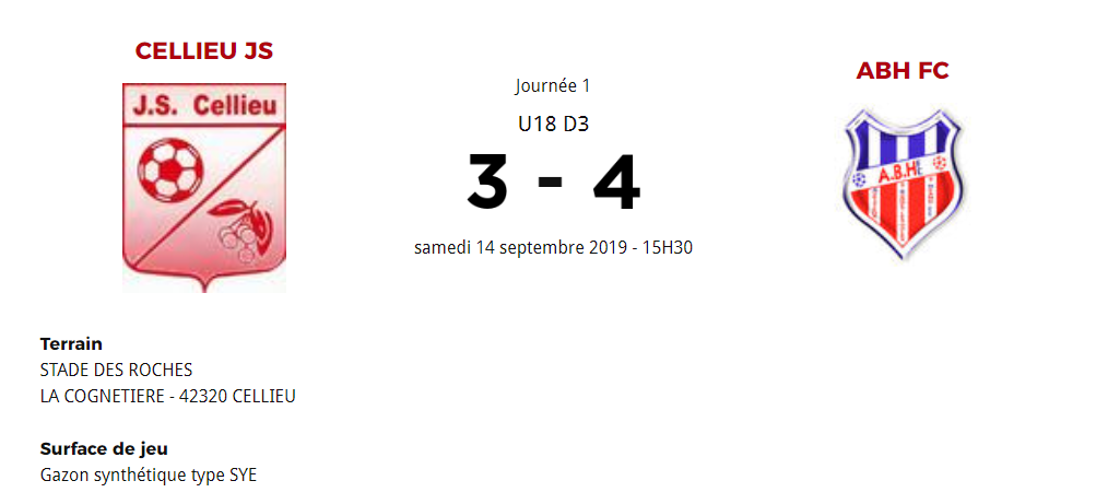 Championnat U18, 1ère journée / Contre CELLIEU JS