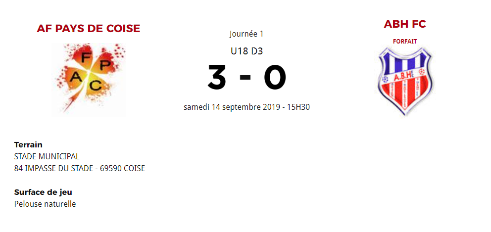 Championnat U18, 1ère journée / Contre AVENIR FOOTBALL PAYS DE COISE 2
