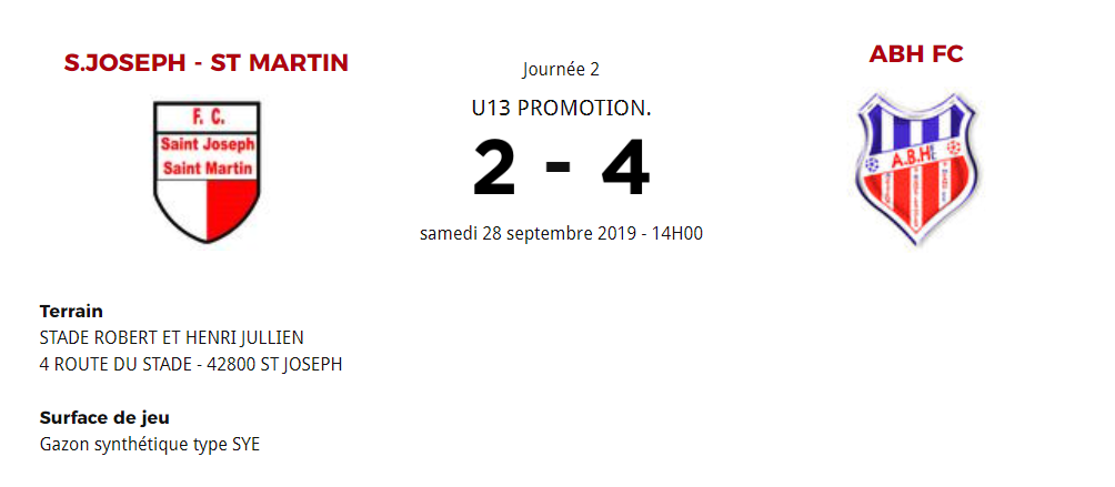 STADE ROBERT ET HENRI JULLIEN 4 ROUTE DU STADE 42800 ST JOSEPH - de 14h à 16h