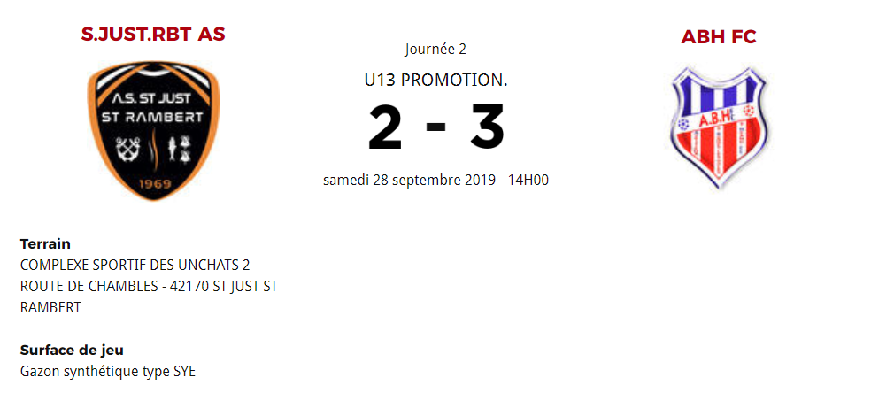 Match finalement à domicile car terrain non disponible à St Just. 1ere mi-temps à sens unique pour ABH avec même un penalty mais le gardien adverse à tout arrêté. En seconde période ABH se fait prendre en contre. Mais les joueurs ont bien réagit et ont fini par l'emporter avec des buts d'Enzo, Martin et Louna. Match agréable. Merci à Mathéo d'avoir officié à l'arbitrage.