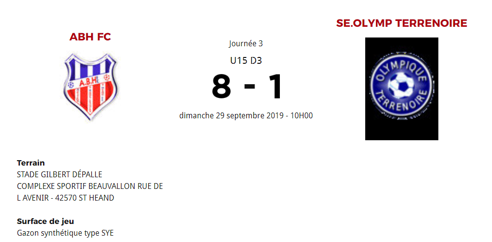 3 EME JOURNEE DE CHAMPIONNAT FACE A L'OLYMPIQUE TERRENOIRE