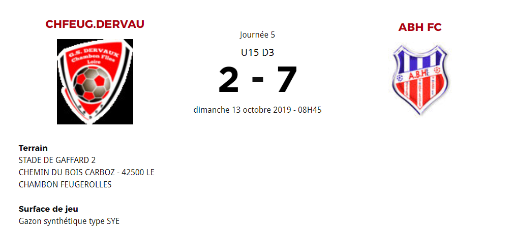 STADE DE GAFFARD 2 CHEMIN DU BOIS CARBOZ 42500 CHAMBON FEUGEROLLES - de 08h à 09h
