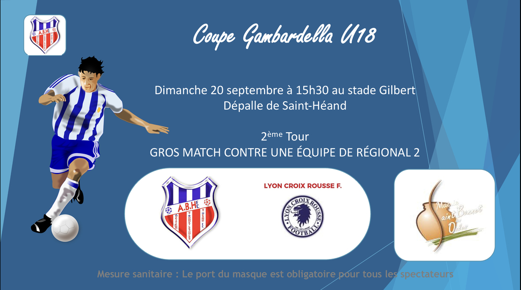 ABH FOOT - Lyon Croix Rousse à 15h30 au stade Gilbert Dépalle.