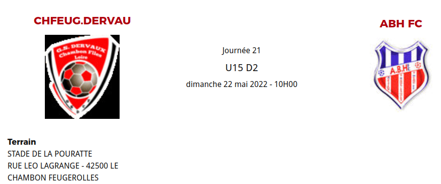 STADE DE LA POURATTE RUE LEO LAGRANGE 42500 LE CHAMBON FEUGEROLLES - de 10h à 12h