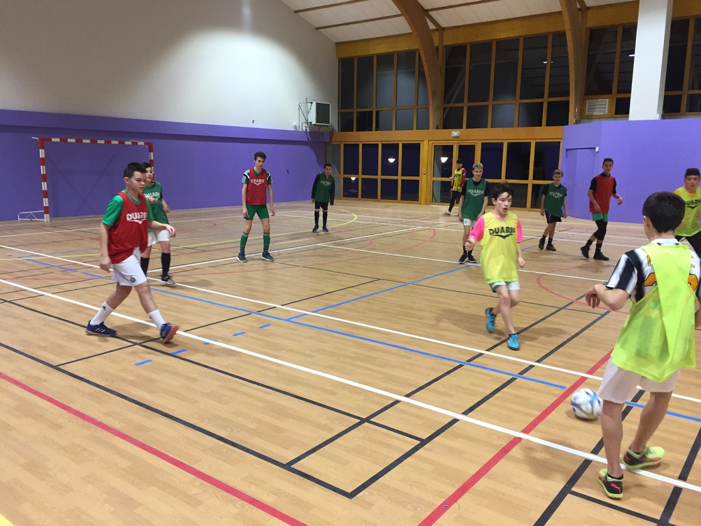 La neige nous a permis d’inaugurer la nouvelle salle polyvalente d’Aveizieux nos U 15 ont profites de cette équipement .